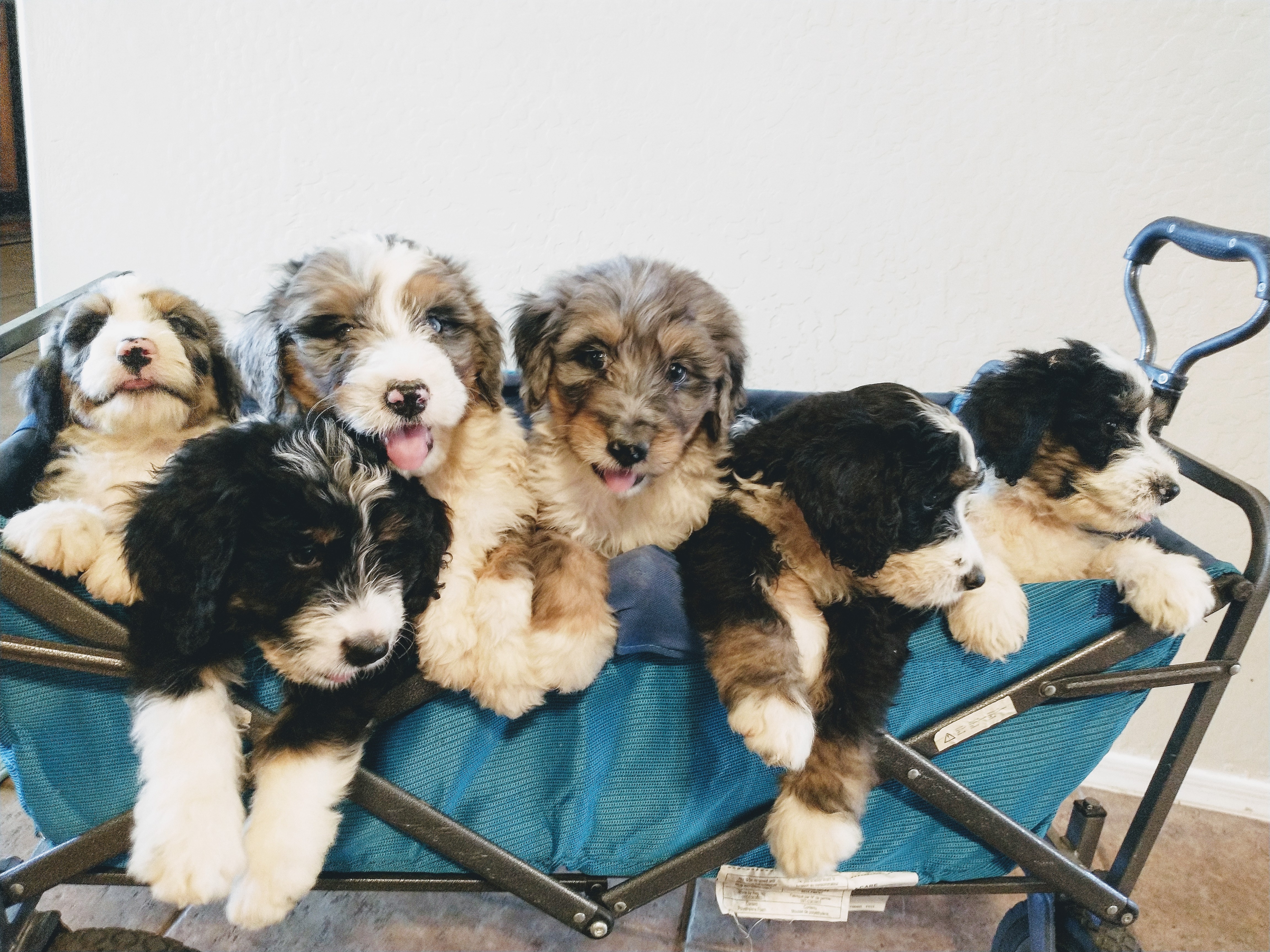 Gorgeous tricolored, merle and sable bernedoodle puppies