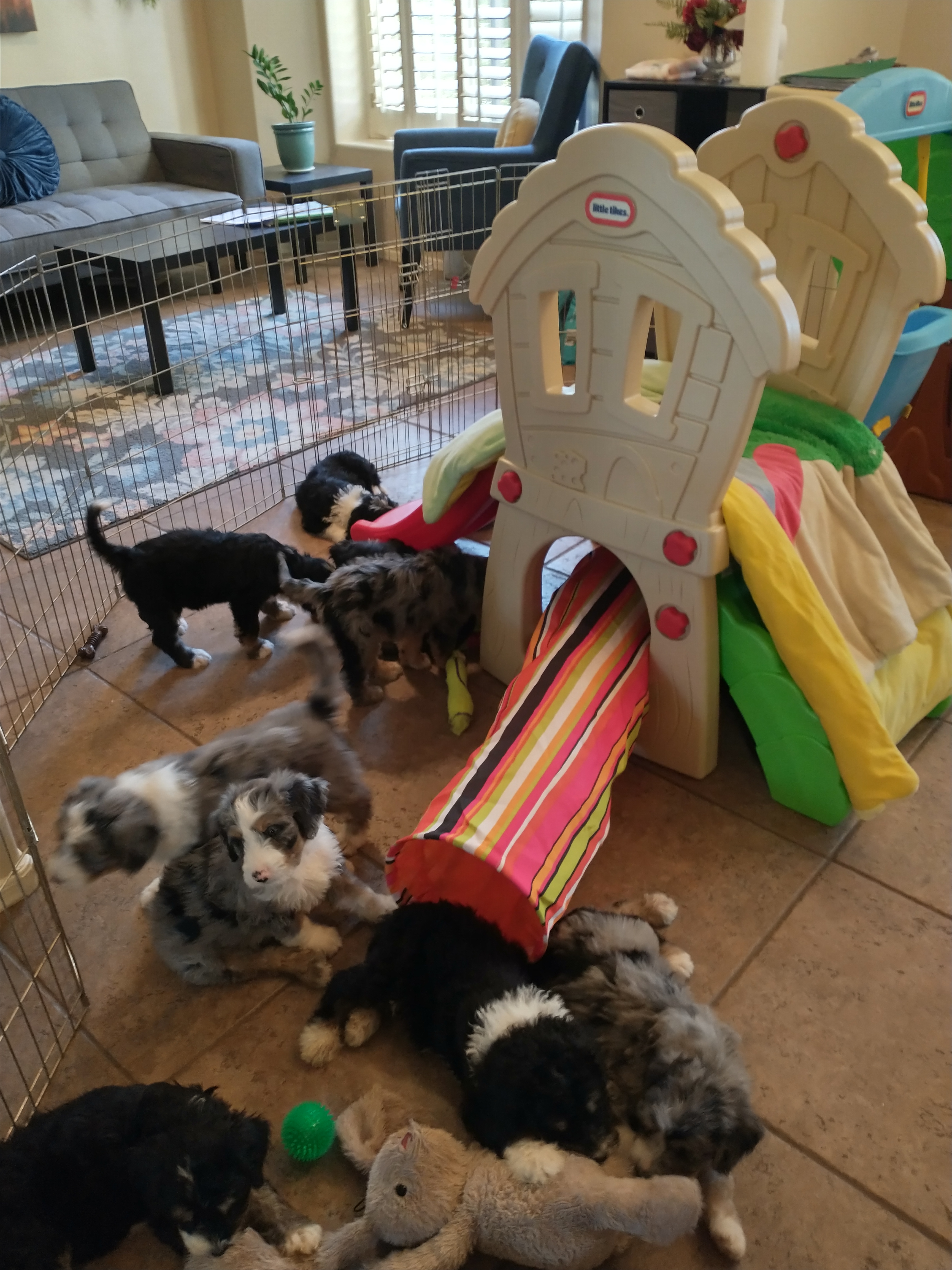 Gorgeous tricolored, merle and sable bernedoodle puppies