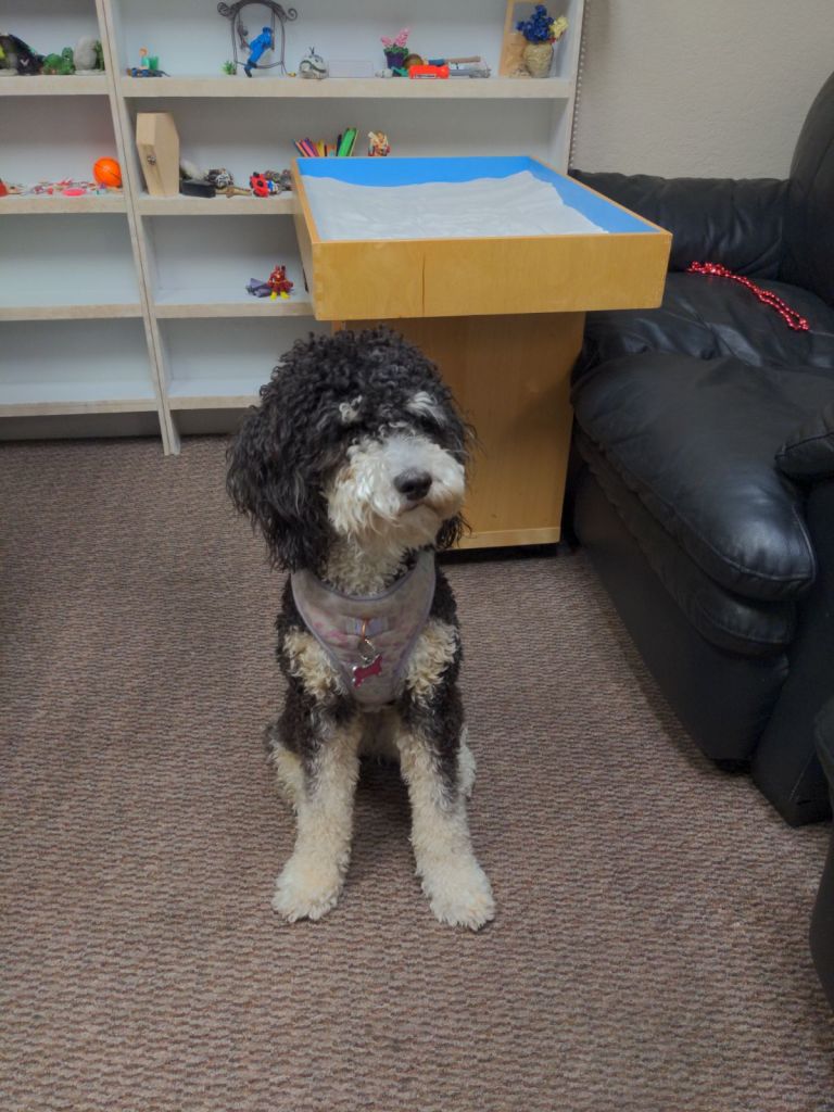 Luka, unfurnished Bernedoodle, School therapy dog.